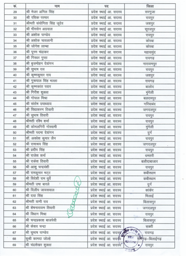 छत्तीसगढ़ BJP प्रदेश कार्यसमिति घोषित, सीएम साय समेत कई नेताओं को जिम्मेदारी