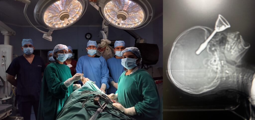 घटना दीपावली के दिन सोमवार की है। बिलासपुर निवासी 9 वर्षीय बालिका घर में खेल रही थी। तभी अचानक गिर गई और उसकी बार्थी आंख पूजा स्थल के समीप रखी घंटी पर पड़ गई। वह इतनी जोर से गिरी कि घंटी के ऊपर का हिस्सा आंख से होते हुए सीधे दिमाग में घुस गया। उसे तत्काल उपचार के लिए सिम्स में भर्ती कराया गया। उसके कुछ देर बाद डॉक्टरों ने बालिका को राजधानी के डीकेएस सुपरस्पेशलिटी अस्पताल रिफर कर दिया। बालिका का सीटी स्कैन किया गया। साथ ही नेत्र रोग विशेषज्ञ डॉ. प्रांजल मिश्रा की मदद ली गई। दूरबीन की मदद से डॉ. राजीव साहू के मार्गदर्शन में न्यूरो सर्जन डॉ. नमन चन्द्राकर और डॉ. लवलेश राठौड़ ने सर्जरी की। एनेस्थीसिया से डॉ. देवश्री ने भी सहयोग प्रदान किया। दूरबीन देखते हुए बहुत ही सावधानी से सर्जरी कर घंटी को दिमाग और आंख से बाहर निकाला गया ताकि आंख के आसपास और दिमाग क्षतिग्रस्त न हो। डॉ. प्रांजल मिश्रा द्वारा आंख के क्षतिग्रस्त हिस्से को रिपेयर किया गया। डॉ. नमन ने बताया कि सर्जरी के बाद बालिका दोनों आंखों से अच्छे से देख पा रही है।