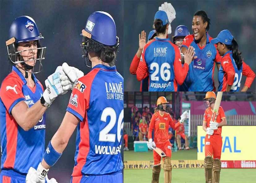 वडोदरा। शिनेल हेनरी (35 रन पर तीन विकेट) और नंदिनी शर्मा (44 रन पर दो विकेट) की अगुवाई में शानदार गेंदबाजी के बाद ताबड़तोड़ बल्लेबाजी के दम पर दिल्ली कैपिटल्स ने महिला प्रीमियर लीग (डब्ल्यूपीएल) टी20 के एलिमिनेटर मैच में मंगलवार को यहां गुजरात जायंट्स को 26 गेंद शेष रहते सात विकेट से हराकर लगातार चौथी बार फाइनल का टिकट कटाया। कैपिटल्स के सामने बृहस्पतिवार को खेले जाने वाले फाइनल में पूर्व चैंपियन रॉयल चैलेंजर्स बेंगलुरु की चुनौती होगी। जायंट्स को सात विकेट पर 168 रन पर रोकने के बाद दिल्ली कैपिटल्स ने 15.4 ओवर में तीन विकेट गंवा कर लक्ष्य हासिल कर लिया। कैपिटल्स के लिए लिजेल ली ने 24 गेंद में 43, शेफाली वर्मा ने 21 गेंद में 31, कप्तान जेमिमा रोड्रिग्स ने 23 गेंद में 41 और लौरा वोल्वार्डट ने 24 नाबाद 32 रन का योगदान दिया। ली और शेफाली ने पहले विकेट के लिए 43 गेंद में 89 रन की आक्रामक साझेदारी के साथ मैच का रुख तय किया तो वहीं वोल्वार्डट और जेमिमा ने तीसरे विकेट के लिए 42 गेंद में 68 रन की साझेदारी कर अच्छी शुरुआत को जाया नहीं होने दिया। जायंट्स के लिए जॉर्जिया वेयरहम ने दो जबकि राजेश्वरी गायकवाड़ को एक सफलता मिली।
