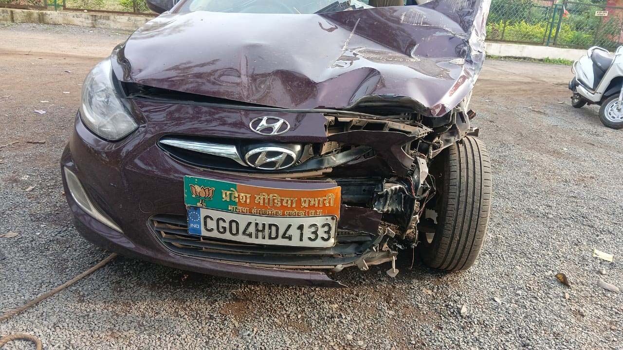 बाल-बाल बचे भाजपा नेता, ट्रक से टकराई कार, रायपुर लौटते वक्त हुआ हादसा